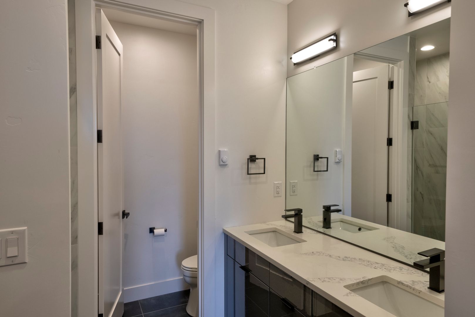 Beautifully designed custom 2594 sq ft. two-unit property built year 2020 with 2 master suites (one with a private deck), both with walk-in showers and walk-in closets, 2 guest bedrooms, 4 bathrooms, laundry room on main floor, oversized double garage.